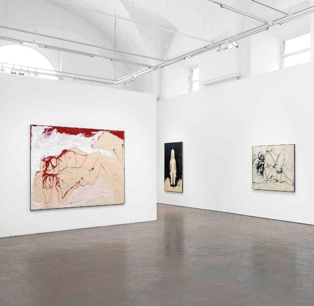 Da qualche giorno alla Lorcan si è inaugurata la personale dell’artista inglese Tracey Emin, fra i nomi più importanti nel panorama artistico mondiale. Varcare la soglia di questa galleria, girare per gli ampi spazi dello storico palazzo Santacroce, riempie ogni volta i polmoni di aria nuova, fa respirare un clima internazionale e mult iculturale. Ci si pensa immortali per tutta la durata della visita. Tracey Emin è un’artista che va conosciuta, va studiata al pari di Artemisia Gentileschi, Frida Kahlo e Tamara De Lempicka. Non è l’unica, l’elenco sarebbe veramente lungo, ma un paio le voglio citare e magari ne racconterò nei prossimi numeri: Louise Bourgeois e Carol Rama. Donne artiste potentissime, ma sconosciute al grande pubblico, alcune anche dopo la loro morte. Pigrizia?, Cliché?, Disattenzione da parte dei media? Forse un po’ di tutto. E forse qui torniamo ancora a morire. Tracey Emin è una di quelle artiste nelle quali la vita coincide con la produzione artistica.