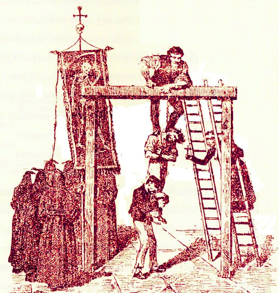 vénéva condannati a morì a lla forca. Pe ll’occasió pe Caturnio la refacénno nòva. Tre pali robusti de castégna camiséglio, tagliati a nna cióppara a Formale Nóvo. Dóa i pianténno prófunni pettèra a distanza no paro de metri j’uno da j’aro e jo tèrzo orizzontale che gli teneva uniti alla parte superiore. A jo palo orizziontale ci fissénno na funi nòva nòva co nó nnuto scórzujo da métte a jo cóglio Caturnio.