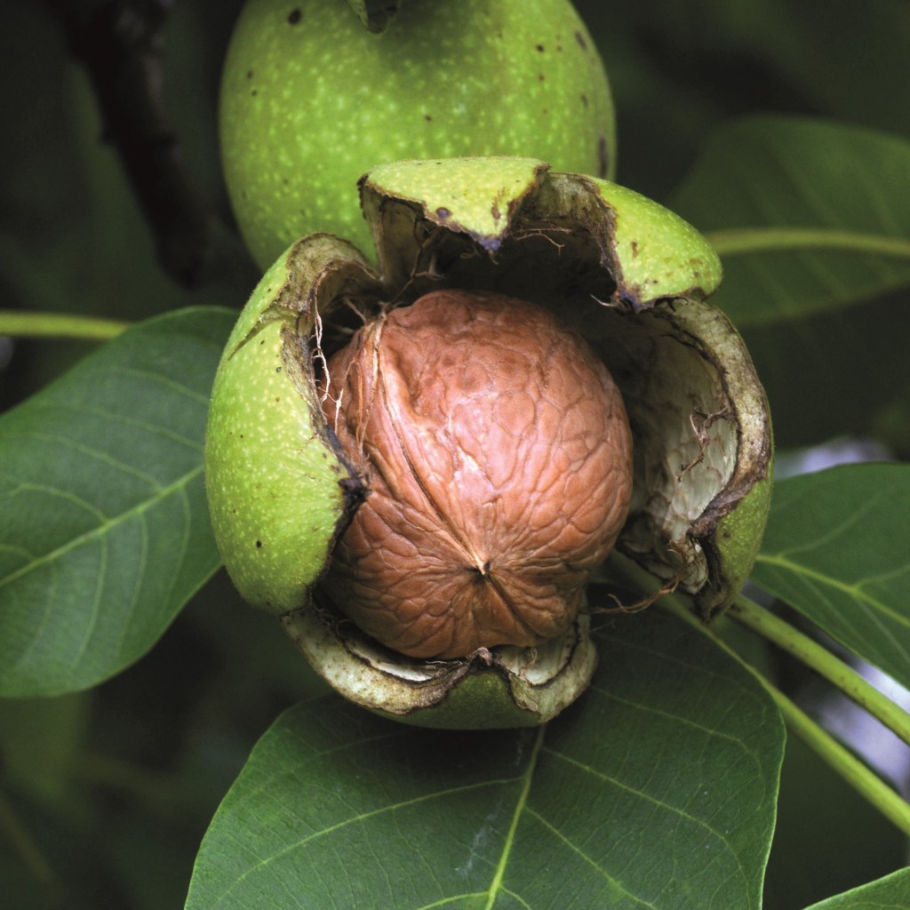 Il Noce da frutto (Juglans regia) o noce bianco è un albero della famiglia Juglandaceae, è più importante del suo genere, anche conosciuto come noce comune o reale. Il frutto (seme), detto anche noce, era utilizzato come alimento già 9000 anni fa e le prime testimonianze risalgono a Plinio il Vecchio e Columella (il VII e il V secolo a.C.). Il suo areale nell’era quaternaria si estendeva dalla Penisola Balcanica fino all’Asia centrale e tuttora sono presenti boschi di noce in Kirghizistan, sulla catena montuosa Tien Shan. È un albero vigoroso caratterizzato da un tronco solido, alto, dritto, con portamento maestoso e robuste radici fittonanti espanse, superficiali a maturità. Può raggiungere una altezza di 30 metri, è molto longevo e plurisecolare. Le foglie sono grandi, verde chiaro, composte ed alterne. È una pianta monoica per cui i fiori maschili sono riuniti in amenti penduli, lunghi 10-15 cm, con numerosi stami, che si evidenziano sui rami dell’anno precedente. I fiori unisessuali femminili si schiudono da gemme miste dopo quelli maschili (proterandrìa), sono solitari o riuniti in gruppi di 2-3, raramente 4, appaiono sui nuovi germogli dell’anno, in contemporanea alle foglie.