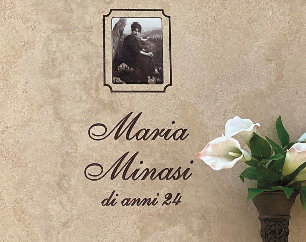 Ecco, nostra madre! Il ricordo di mia madre negli occhi morenti di mio fratello ha ricordato le numerose visite che per quasi mezzo secolo ho fatto con lei al Cimitero per sostare raccolti o per conoscerne la vita narrata presso le tombe di parenti, amici o di semplici conoscenti. L’ultima sosta, inevitabile, era davanti alla tomba di una giovane dal bel volto di cui mia madre ogni volta mi raccontava la breve vita, solo tre anni, a Cori. Era la tomba di Maria Minasi con lapide commemorativa affissa al muro che cingeva a occidente il Camposanto. L’ultimo fiore, spesso una rosa, mamma lo posava sempre sulla tomba di Maria. Mamma ne era devota. Mamma mi impegnò, per quando lei non avrebbe più potuto, a sostare sempre davanti alla tomba di Maria in ogni visita al Cimitero qualunque ne fosse stata la causa. Così ho fatto per quaranta anni dalla morte di mamma, 1983, fino alla demolizione della tomba di Maria. Purtroppo spesso prendono questo tipo di decisioni persone ignoranti della storia di un paese, che non si fanno domande prima d’agire. Non riflettono sul “Genius Loci”. Maria ne faceva, ne fa ancora parte!
