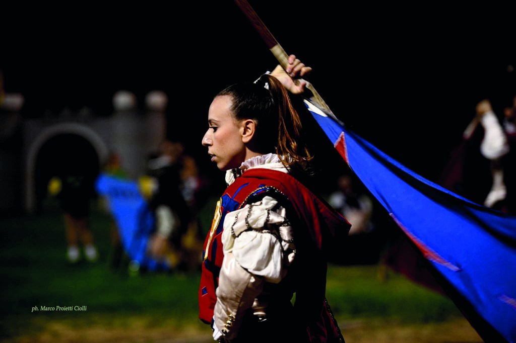 Eravamo io e la mia amica Giada, ed eravamo furiose. Da bambina guardavo sfilare quelle bandiere per le strade di Cori e sognavo, ma crescendo capisci che c’era un non detto: c’erano solo ragazzi. Per cui, stavamo organizzando una raccolta firme. Volevamo forzare la mano, e dire “ci siamo anche noi”. Stavamo lì a limare i fogli della petizione quando, per una coincidenza assurda, gli Sbandieratori dei Rioni di Cori hanno mostrato sui social la presenza di ragazze! Avevamo le penne pronte per la battaglia, e invece ci siamo ritrovate a firmare l’iscrizione. È capitata così, poi tra l’iniziare e rimanere c’è sempre un percorso.